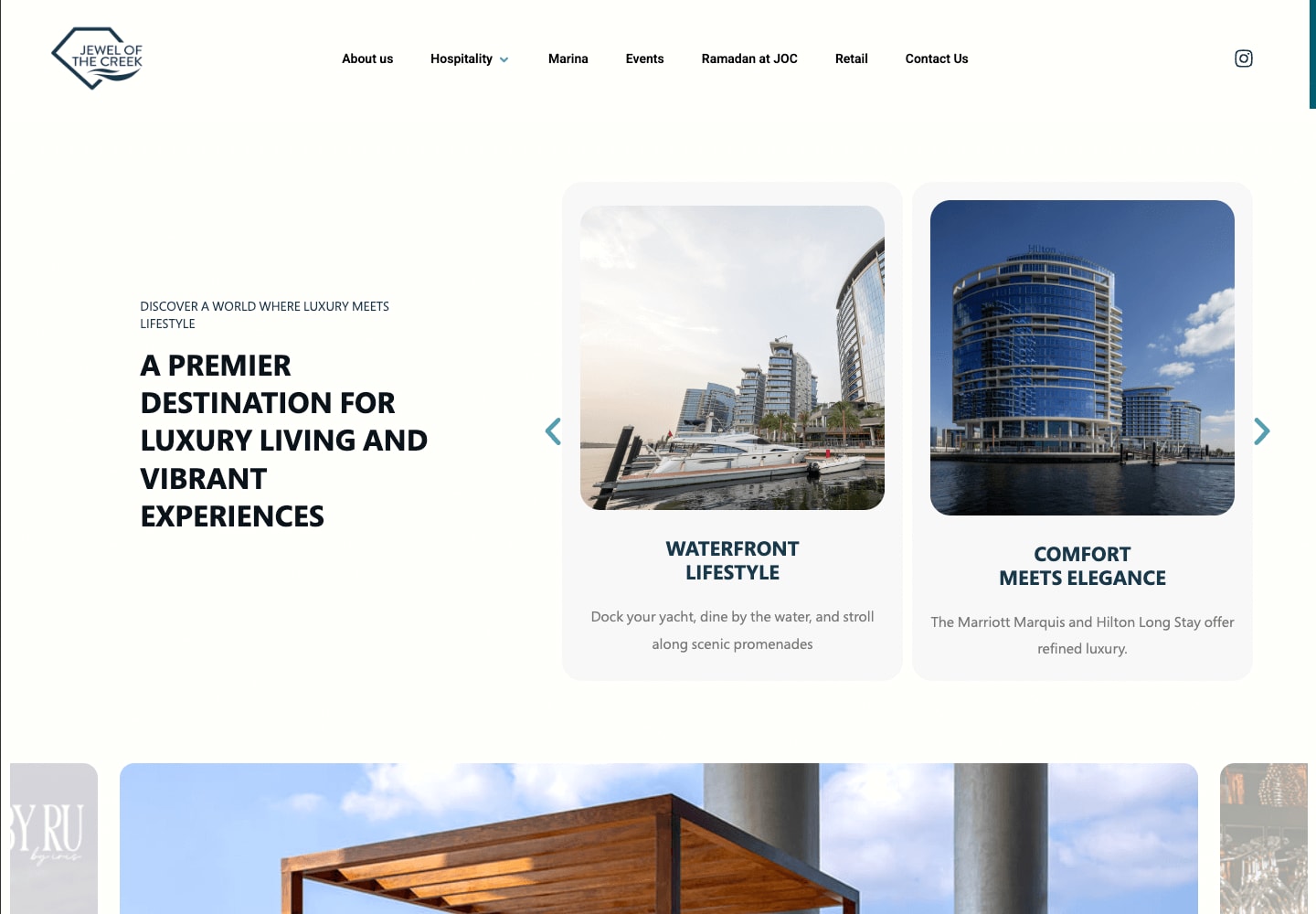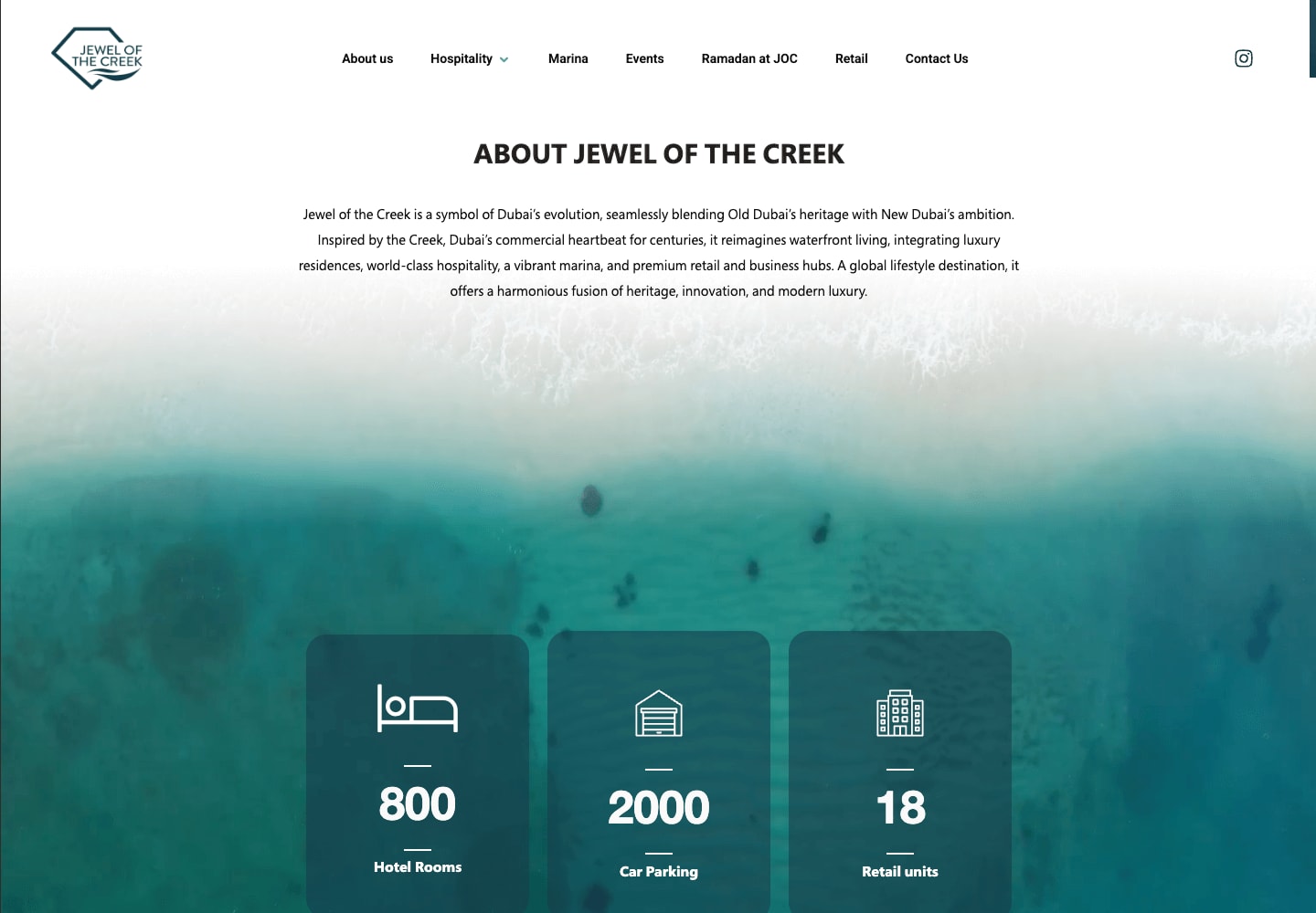 Design and development of a destination website for Jewel of the Creek, crafted to showcase waterfront lifestyle, hospitality, retail, and marina experiences in Dubai.